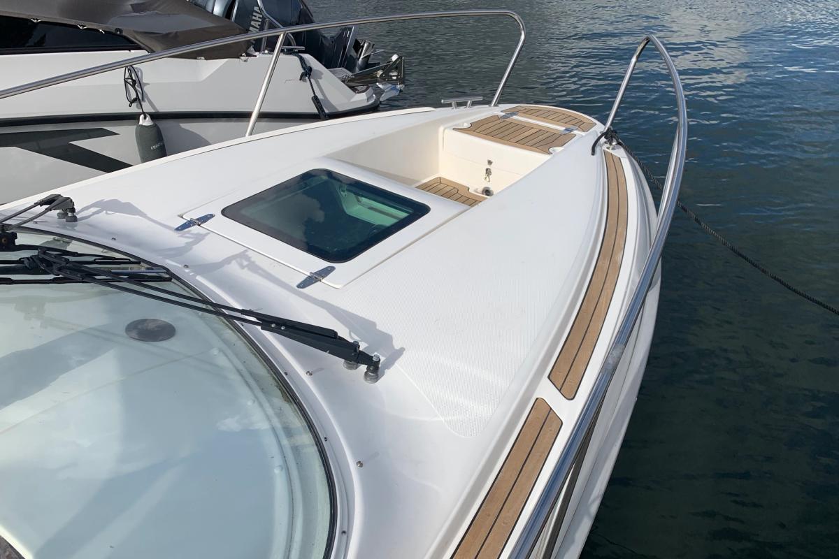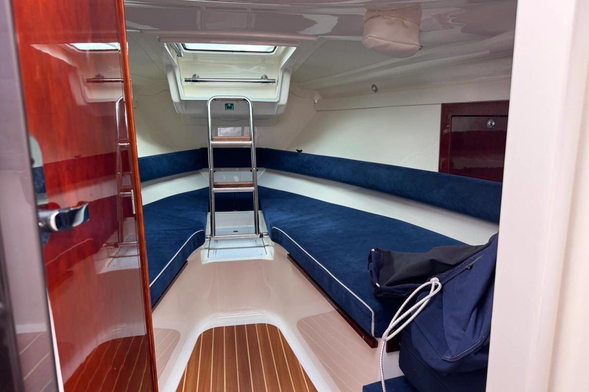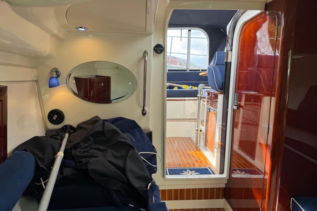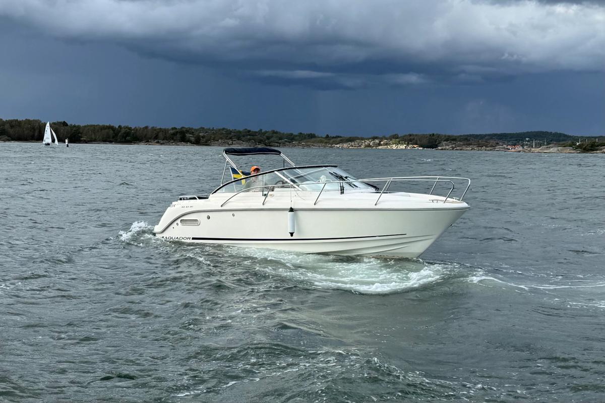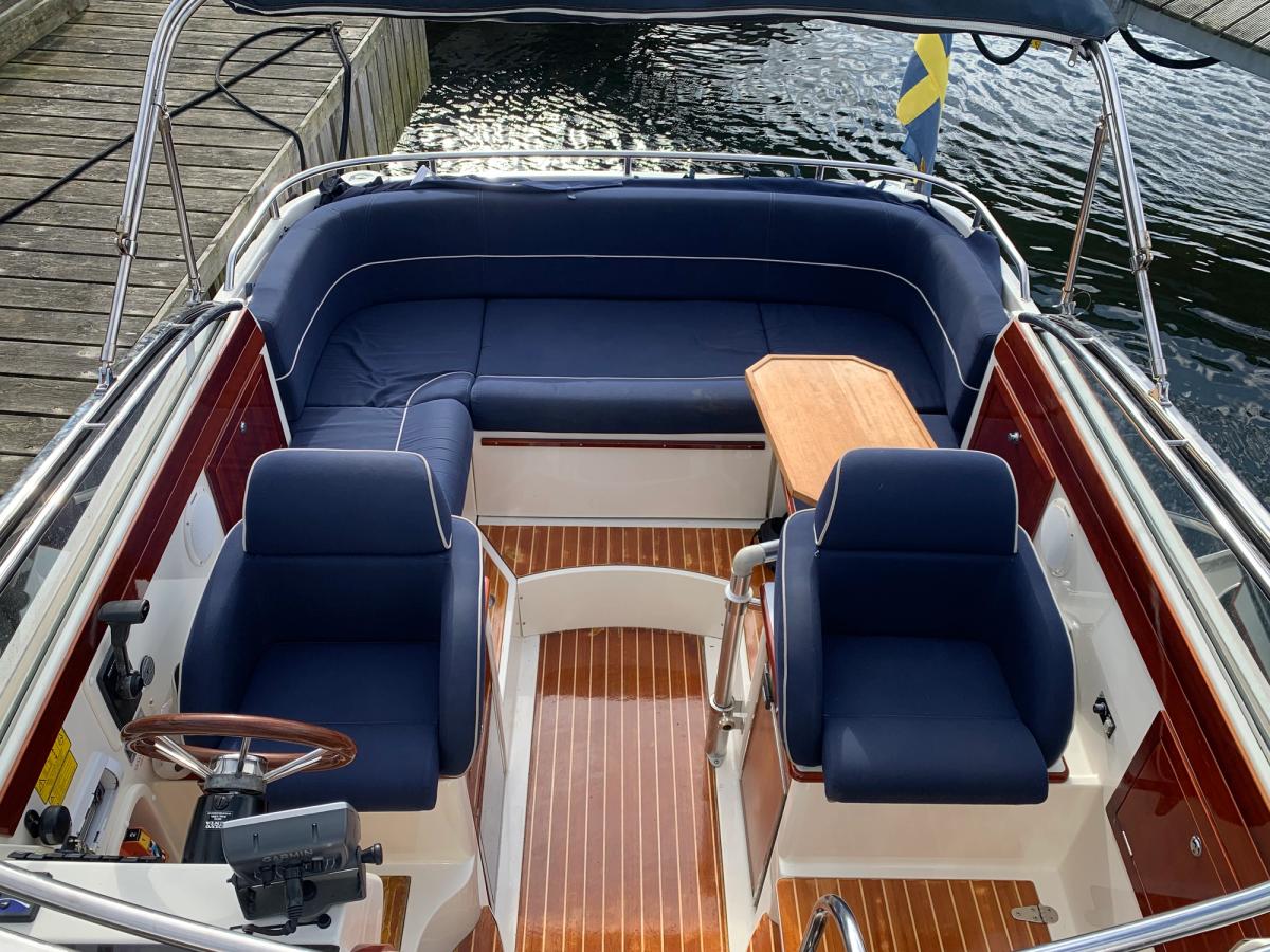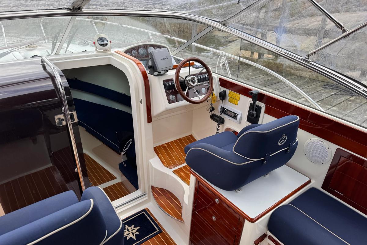 D4 som tar fram det bästa båten har att erbjuda i sjön! Marschfart på cirka 26-28 knop och toppfart knappt 40 knop. Stor u-soffa i aktern för 5-6 personer, solbäddslösning till aktersoffan som även kan användas till 2 kojer. inne i ruffen har den en dubbelkoj samt en stickkoj för 1 vuxen, separat toalettrum. Mycket gott om stuvutrymmen i hela båten.